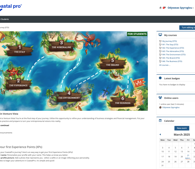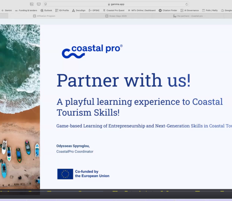 On March 18, 2025, CoastalPro successfully hosted its first onboarding webinar for its brand-new Affiliation and Partnership Program, bringing together stakeholders from the world of coastal tourism, vocational education, and sustainability. Led by Project Coordinator Odysseas Spyroglou, the session offered a deep dive into CoastalPro’s online academy and its innovative, gamified learning model designed to enhance entrepreneurship and next-generation skills in coastal tourism. […]